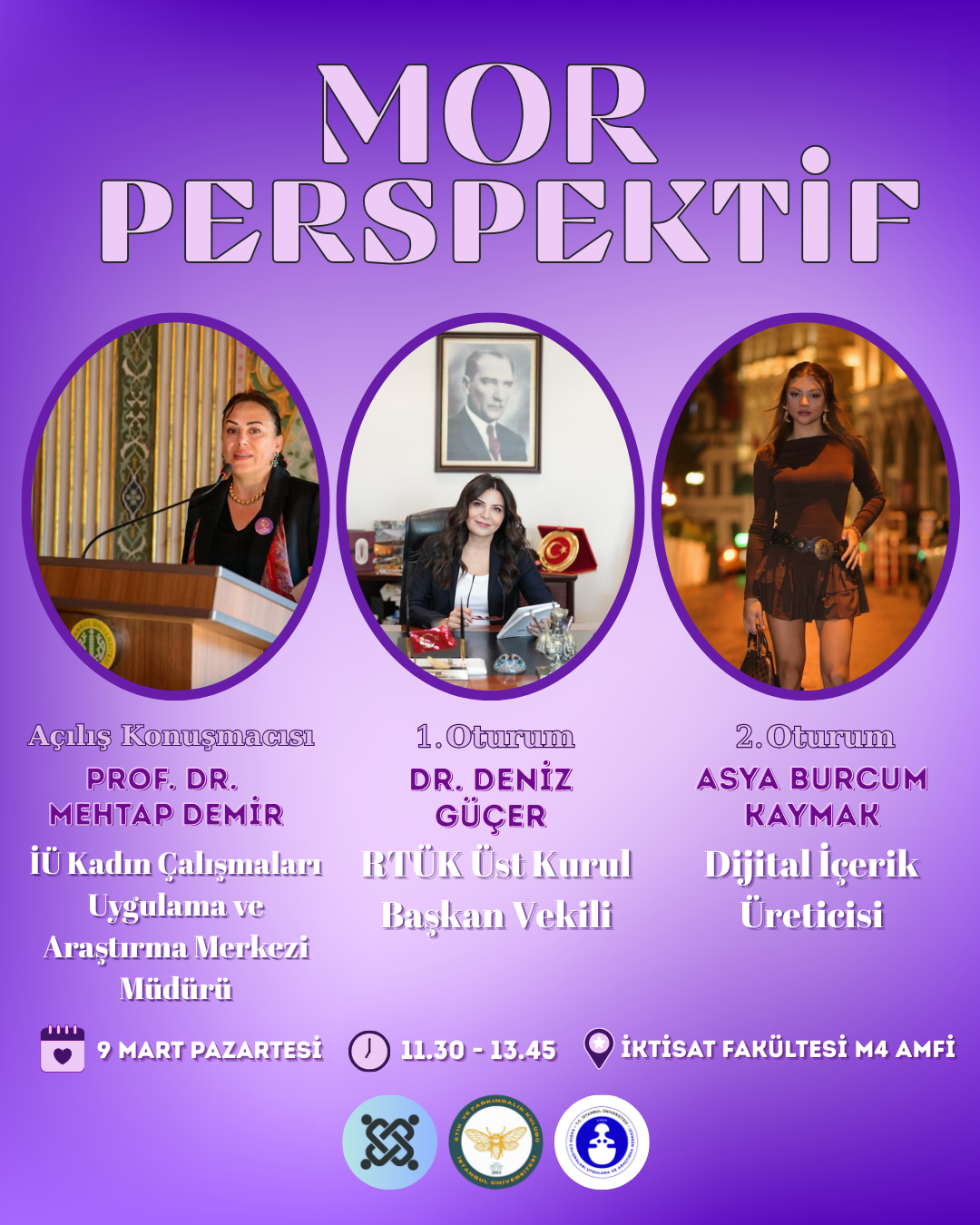 Etkinlik, Uluslararası Kadınlar Günü kapsamında, İstanbul Üniversitesi Etik ve Farkındalık Kulübü tarafından 9 Mart 2026 tarihinde Beyazıt Kampüsünde, İstanbul Üniversitesi İktisat Fakültesi M4 dersliğinde düzenlenecek iki oturumlu bir konferanstır.
