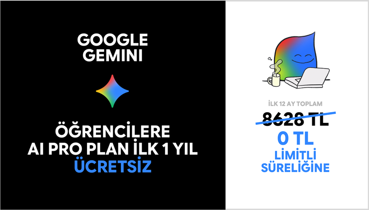 Google olarak, yapay zekanın öğrenme ve kariyer geliştirme süreçlerindeki dönüştürücü gücüne inanıyoruz. Bu doğrultuda, öğrencilerin potansiyellerini en üst düzeye çıkarmalarına yardımcı olmak için en gelişmiş yapay zeka modelimiz Gemini Pro'yu ve özel olarak tasarlanmış yenilikçi araçları sunuyoruz.